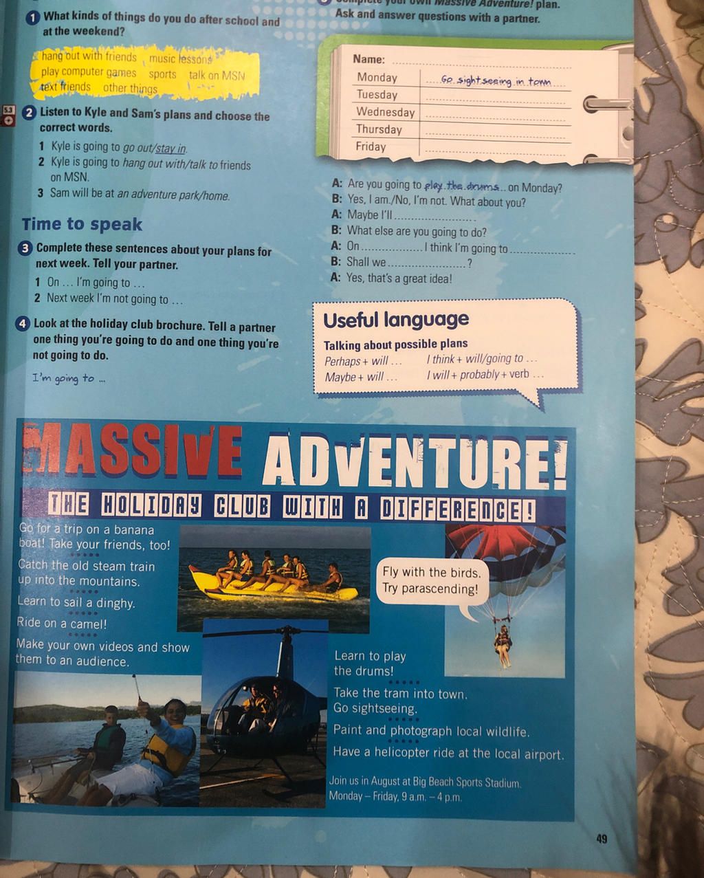 UWII Massive Adventure! plan. Ask and answer questions with a partner. 1 What kinds of things do you do after school and at the weekend? hang but with frie